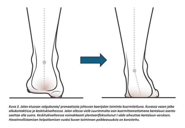 Kuva 1. Kaarijalalle on tyypillistä kantaluun varusasento.